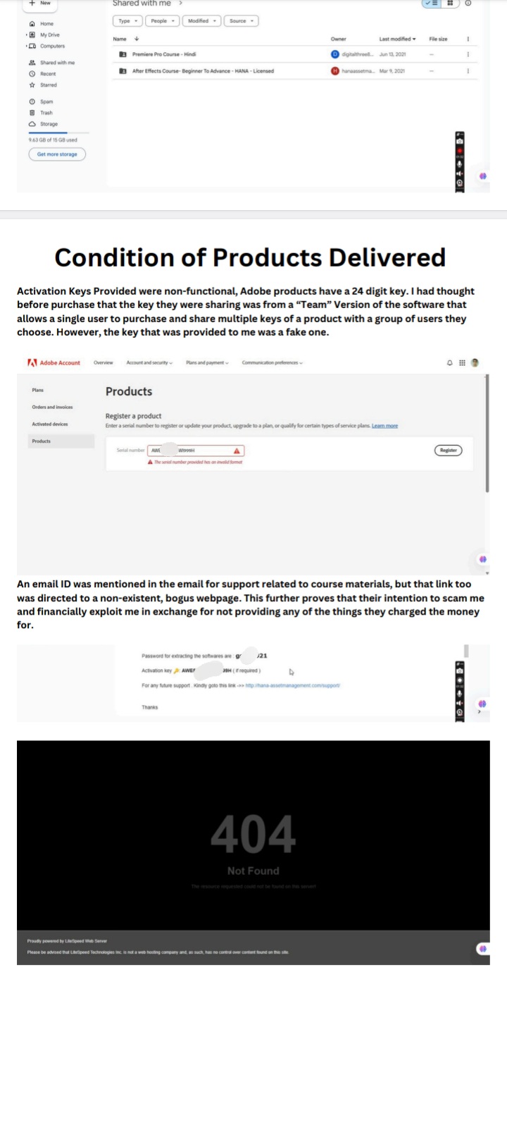 I enrolled in their [Graphics Design Professional Course] after being assured that I would receive full course access, software tools, and a certificate for professional development. However, despite making the required payments, I did not receive the promised services.