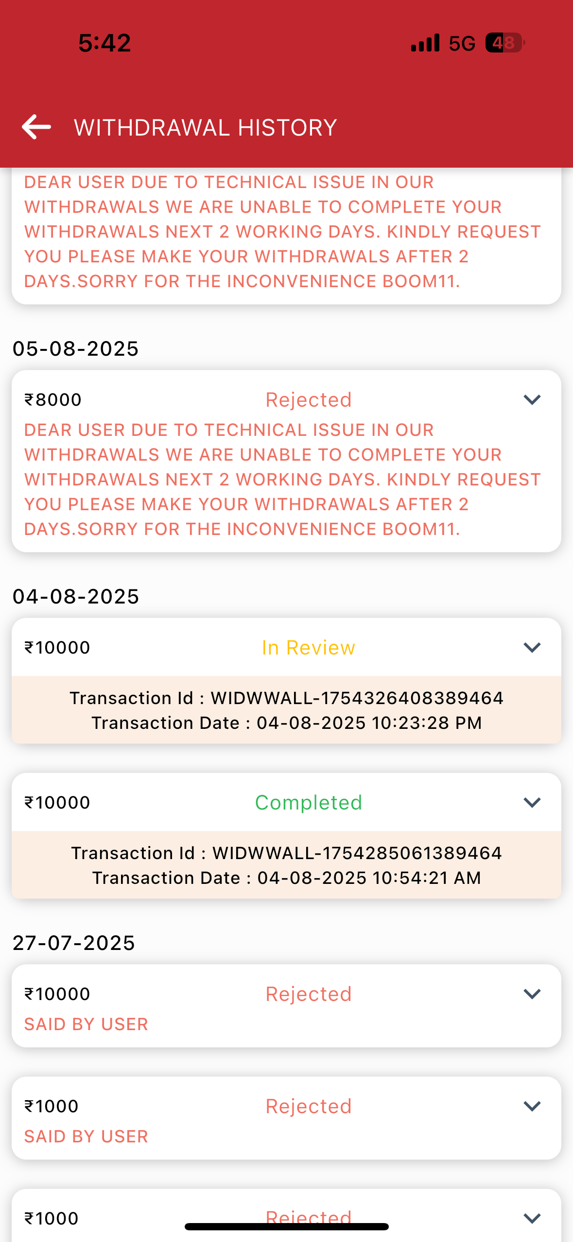 Withdrawal Issue:My withdrawal request of 10000 + 10000 Transaction ID has been attached and pending for last 4 days