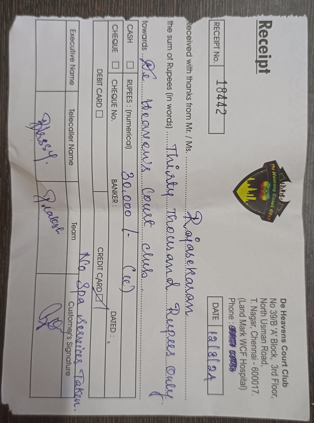 * Get refund / replacement / damages from DE HEAVENS COURT CLUB.