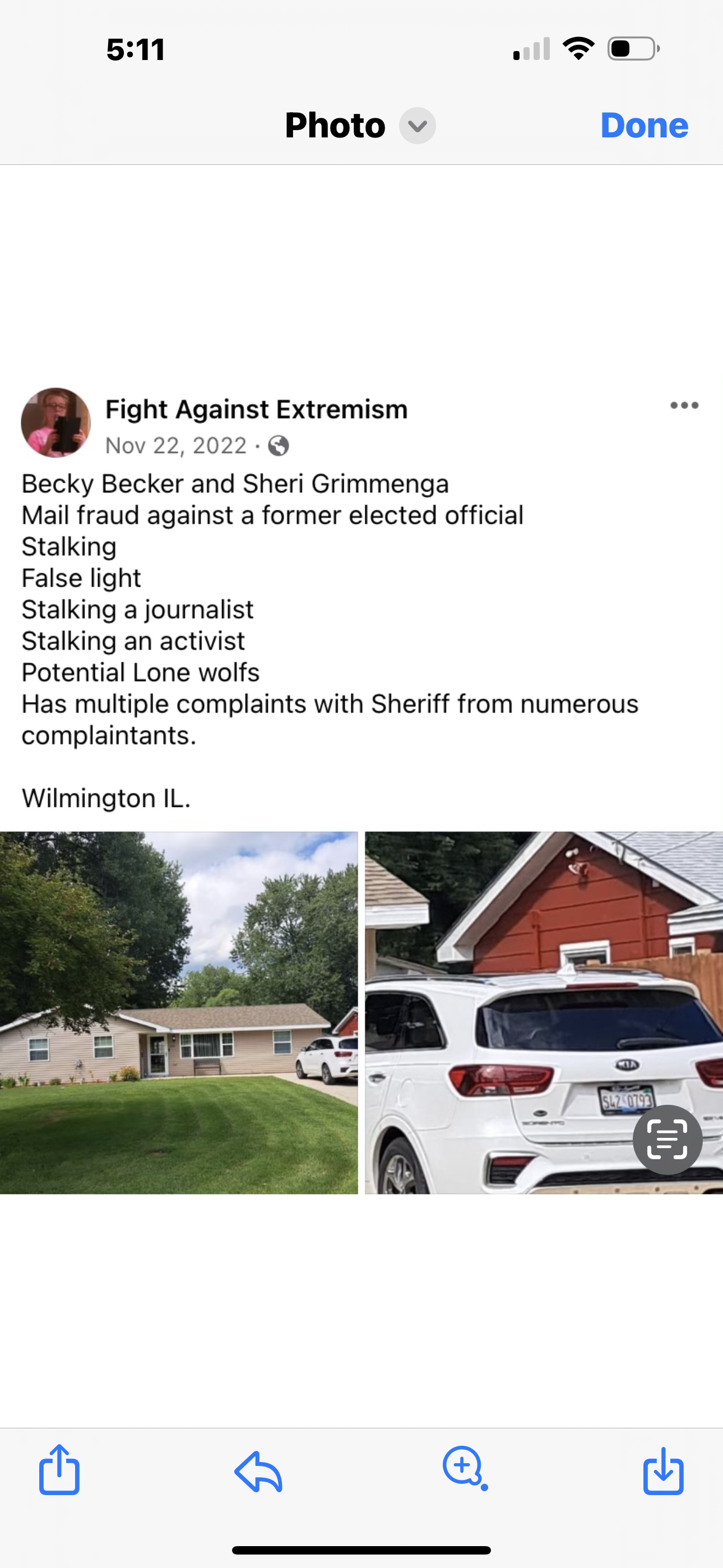 I am lodging a complaint against Bonnie Kurowski who has many Facebook pages but uses will county reporter, the Illinois reporter, Bolingbrook pages. She says she was a a journalist but she is not. She puts out false info and harasses those who don’t believe her lies she posts. Many complaints to Facebook but they do nothing. She puts out personal info such as home address, car, license number, calls people racist, domestic terrorists and stalks. Nobody does anything to her. She Sue’s that you defame her but always backs out of lawsuit because she has no case. One of many posts downloaded.