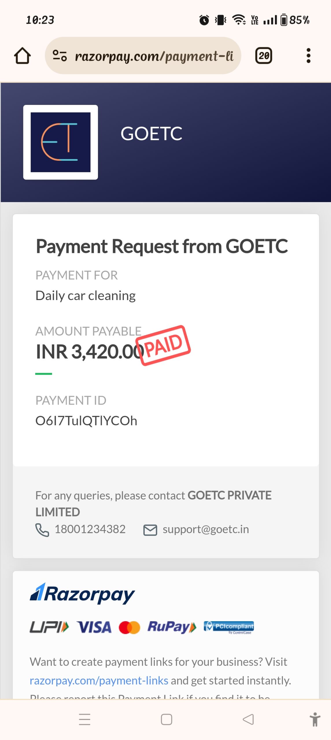 * Write Goetc car cleaning service in company name section and write your complaint in detail