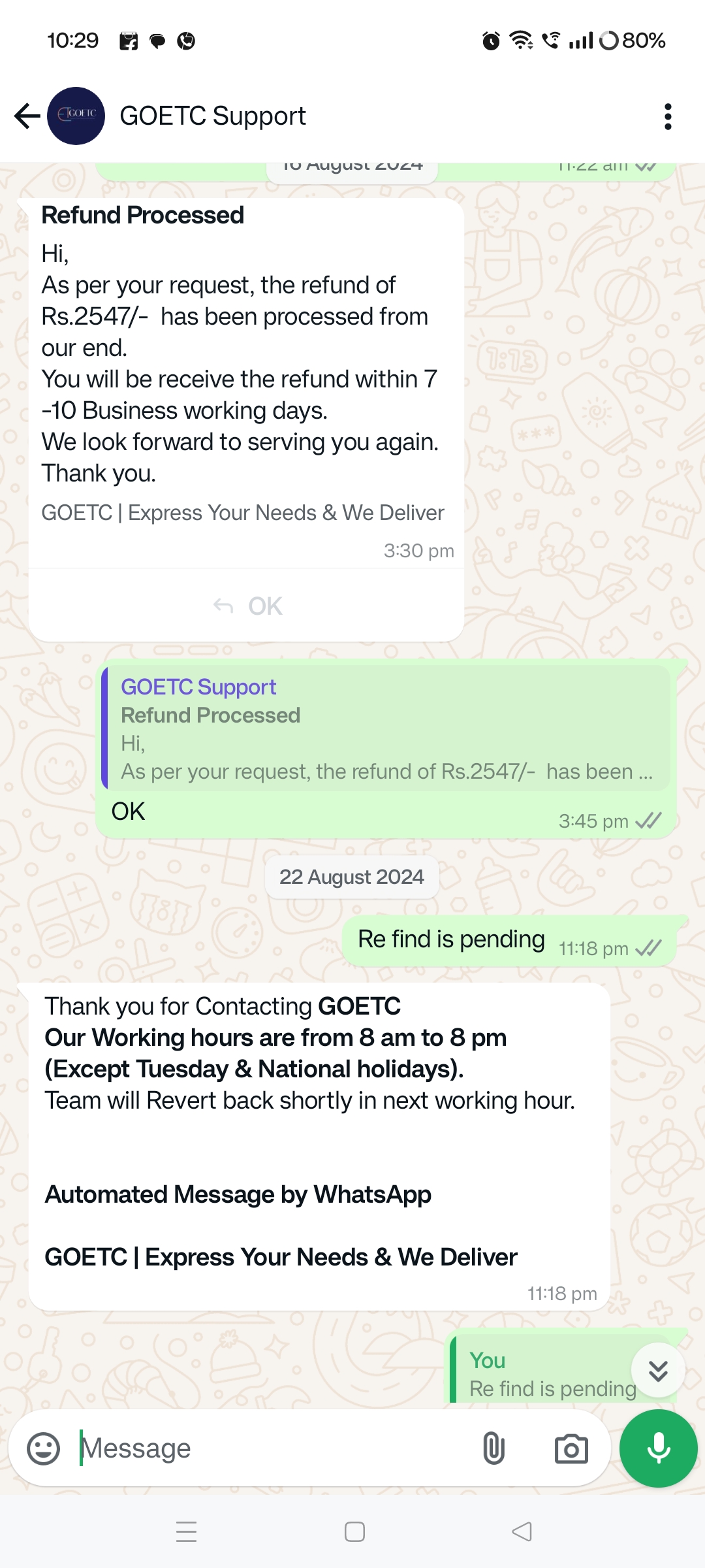 Goetc promised car cleaning from 14 aug but failed and kept postponing the dates. Latest promised the refund and it’s been more than 2 months now, there is no response.