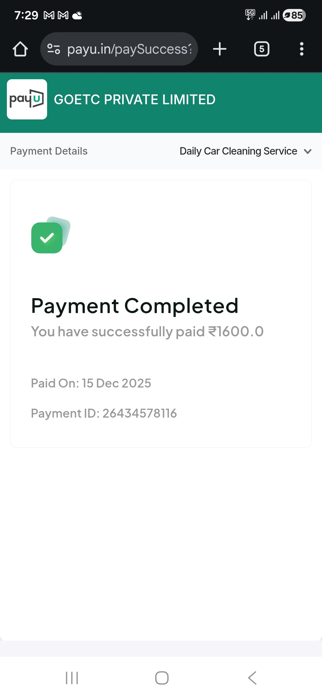 I was approached by whatsapp message on multiple ocassion by this company name Goetc, promised to give daily car cleaning at door step, prompting that a limited cleaner available in your area.so once I decided to take their service they by default ask for advance payment, minimum service opted is 3 months, so making it minimum amount is 1600 rs. After payment, the didn’t provide details of cleaner, giving excuse that they will provide details only the day before service starts. But the service never started. Again giving excuse that we will starts after 10 days as there is no cleaner available in your area. So I asked for refund, to which they agreed once. But afterwards there was no further responce or communication. I kept asking repeated times.