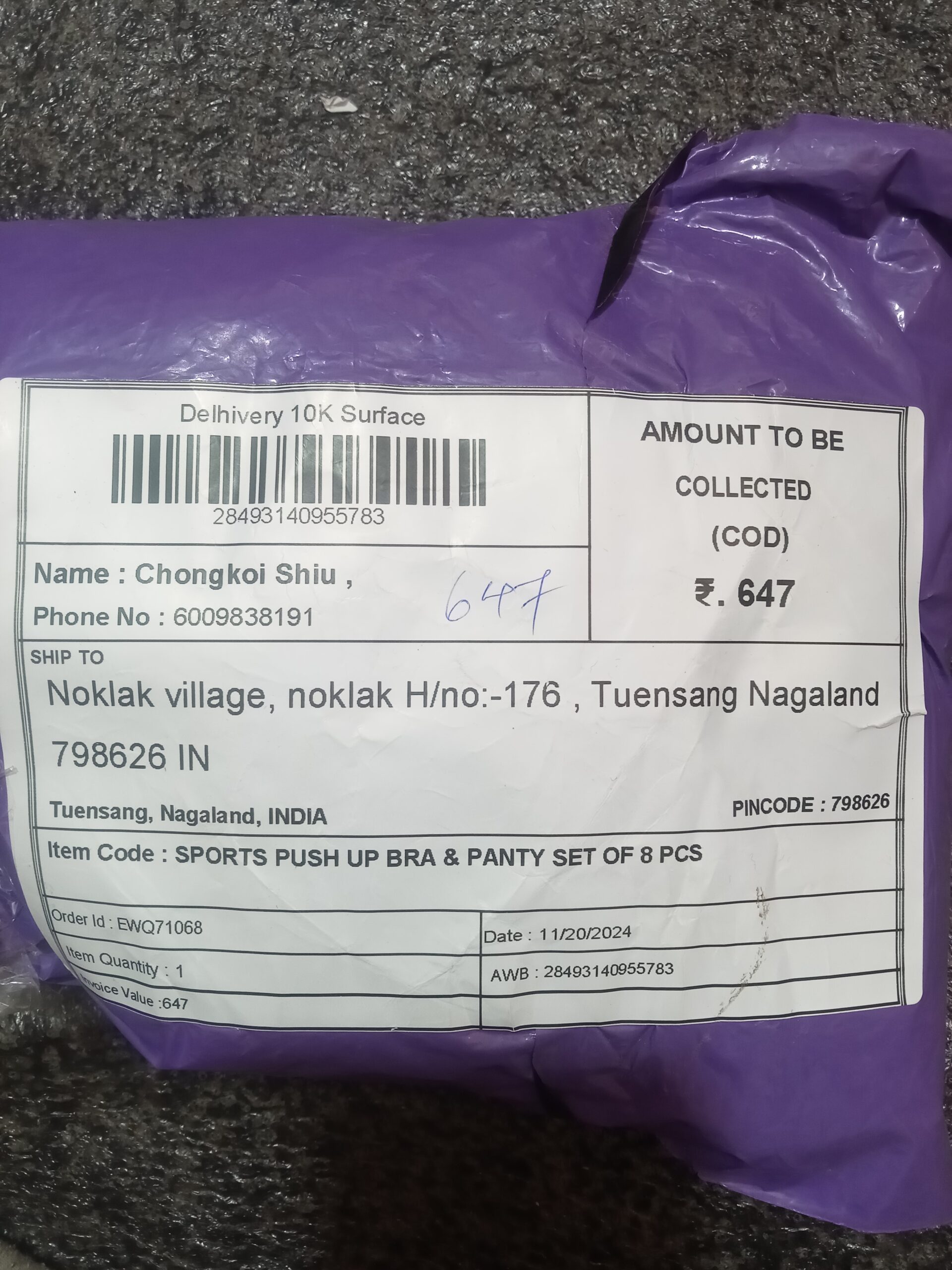 COD Amount – 647