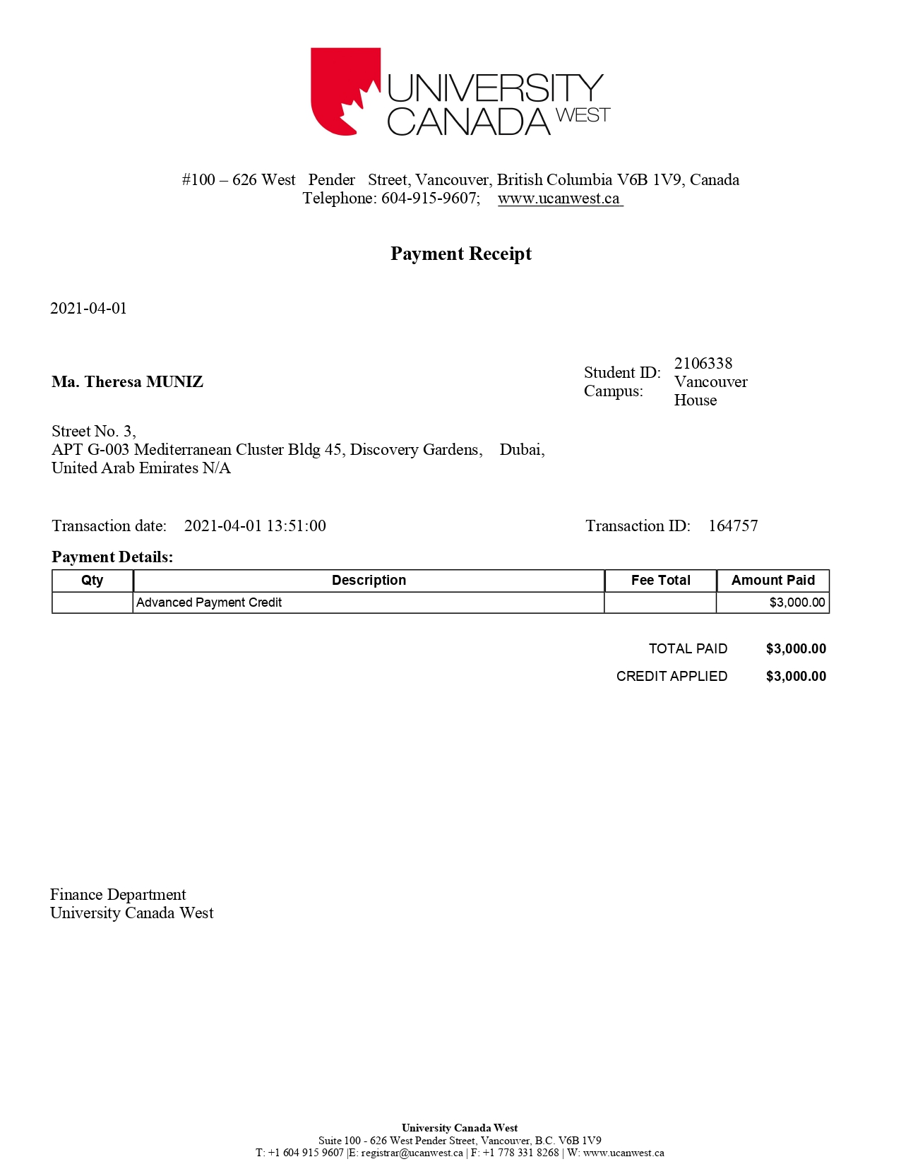 Due to willful neglect of not reading emails correctly but only responded with ready to copy & paste responses from UCW, my aim to study in Jan 2023 did not happen thus, kindly help in refunding the deposit I paid to them of USD 3,000. I’d been trying to get my revised LOA from a request in May 2022 for Jan 2023 intake but unfortunately, Mr. Sahib of UCW Recruitment staff was not able to provide the LOA but responding with a different request from several exchanges of emails till he found out in Nov 2022 only that I need to submit English proficiency certificate. The requirement originally without IELTS for Filipinos that’s why I was encouraged to apply to immediately receive an LOA and apply for study permit. Some changes happened in my situation in Dubai to delay my intake but whenever I needed a revised LOA, it was being provided on time. It was that much leniency during pandemic times and I was even informed that I can request for a revised LOA if I need so. I had the same situation as currently, I have been working in Dubai and given proof that English has been the main communication in my workplace and provided the same certificate letter that I was given LOA but now, they said it’s not acceptable. With those experiences happened with them of not knowing exactly what’s the requirement and being exhausted and disappointed as to the right information to receive, I am totally give up to deal with them and I am not happy to continue my study in UCW. Thus, please help to resolve this matter the soonest.